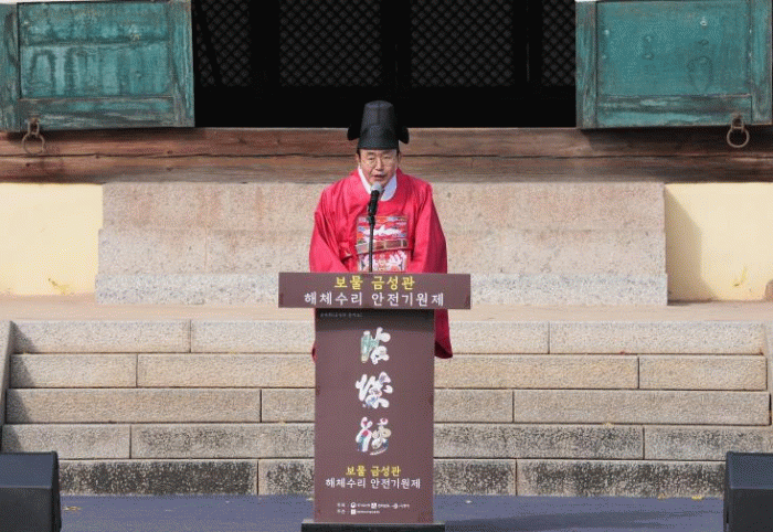 의례는 전통 고유례를 시작으로 금성관의 무사한 해체와 보수를 비는 안전기원 비나리, 복원의 완전성을 기원하는 축원무 순으로 진행했다.
