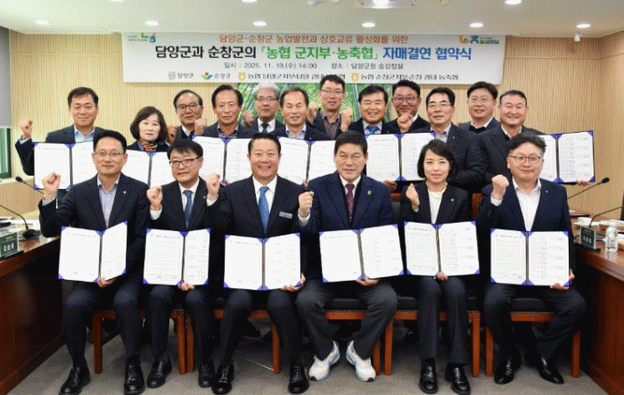 이날 협약식에서는 정철원 담양군수, 최영일 순창군수를 비롯해 김은경 NH농협 전남지역 경영부본부장, 이창완 전북지역 경영부본부장, 이광재 담양군지부장, 신종철 순창군지부장과 지역농축협장 등 20여 명이 참석했다.