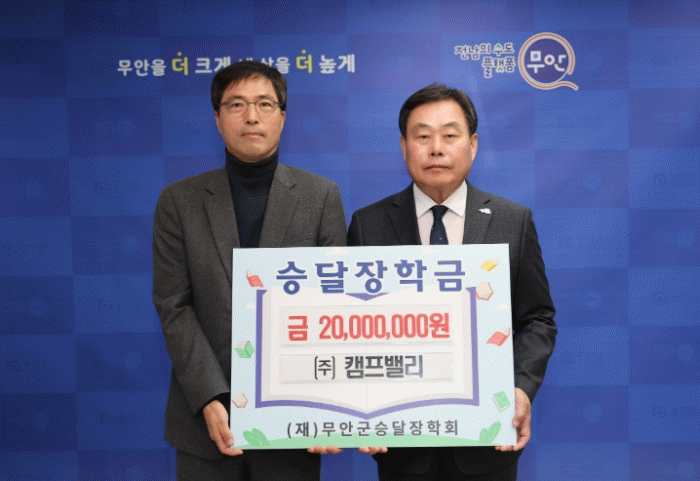 기탁식에 참석한 김범준 대표는 “무안군에서 성장한 기업으로서 지역의 미래를 이끌어 갈 학생들을 응원하는 마음으로 장학금을 기탁해 왔다”며, “앞으로도 꾸준히 나눔 활동을 이어 가겠다”고 전했다.