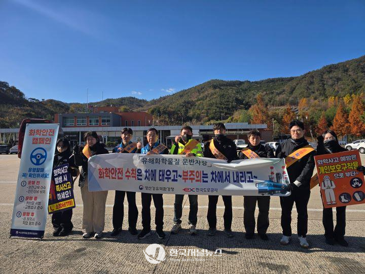 이날 캠페인에서는 운전자들에게 안전운전 수칙과 사고 초기 대응요령을 안내하고, 차량 내 부착용 ‘안전운행 스티커’를 배포·부착했다. 또한 열화상 카메라를 활용해 노후 탱크로리의 이상 유무를 점검하고, 보호장구 비치 여부 및 관련 법 준수사항을 함께 확인했다.