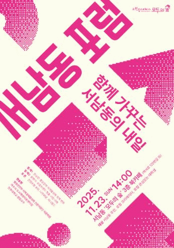 ‘서남동 포럼’은 지역 주민, 로컬 크리에이터, 청년 창업가, 대학생 등 누구나 참여 가능하며, 기타 자세한 사항은 도시공간계획과로 문의하면 된다.