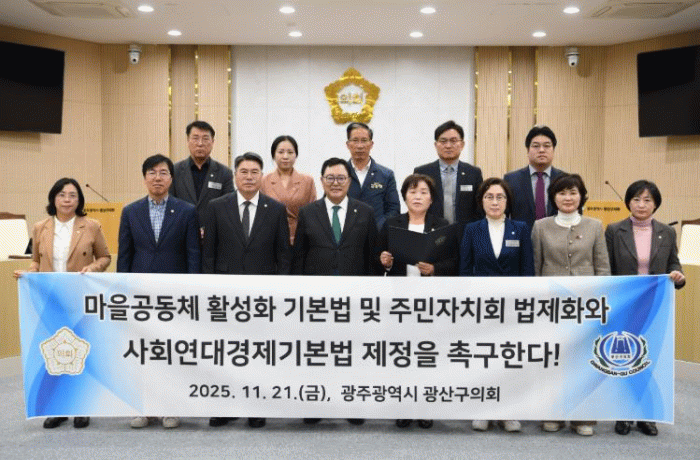 광산구의회는 조영임 의원(더불어민주당, 첨단1·2동)이 대표 발의한 건의안을 통해 “우리 사회는 물질적 풍요 속에서 공동체 해체, 사회적 고립이 심화되고 있다”며 “지역 문제와 불평등을 해결하기 위해서는 행정 중심의 개발 논리가 아닌 주민 스스로 공공의 가치를 만들어가는 풀뿌리 자치의 회복이 필요하다”고 강조했다.