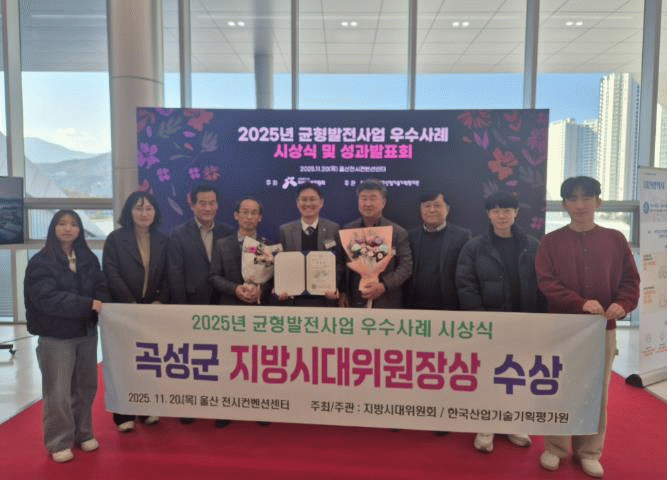 시상식에 참석한 정창모 곡성 부군수는 “곡성 군민의 적극적인 참여와 공동체 정신이 이뤄낸 값진 성과”라며, “앞으로도 관련 사업들을 차질없이 추진하여 지역의 균형발전을 이룰 수 있도록 최선을 다하겠다”라고 밝혔다.