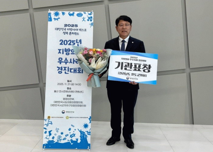 완도군의회는 2024년 경진대회에서 사회·경제 분야 자체 우수사례로 '전국 최초, 도서지역 치안지킴이 ‘112한달음선’이 뜬다 – 도서지역 재난 및 범죄예방을 위한 협력체계 구축'을, 2025년 경진대회에서 주민참여 분야 자체 우수사례로 '전국 최초, 전남·완도 상생 고향사랑기부금 ‘마을공동빨래방’'을 각각 선보여 2년 연속 우수사례로 선정되는 성과를 거두었다.
