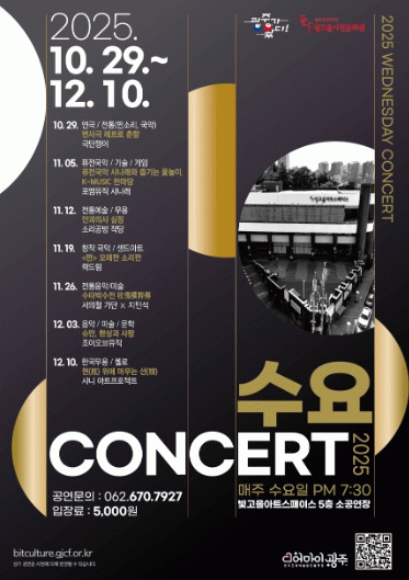 ‘수요콘서트’의 입장료는 1인당 5,000원이며, 수익금 전액은 공연팀에게 전달된다. 또한 광주문화재단은 ESG 경영 실천의 하나로 전체 좌석의 10%(약 10석 내외)를 문화누리카드 이용자 등 취약계층에게 무료로 제공하고 있다.