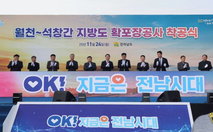 함평군은 25일 “손불면 일원에서 ‘월천~석창간 지방도 확·포장공사’ 착공식이 김영록 전라남도지사, 이상익 함평군수, 모정환 전남도의원, 이남오 군의회 의장 등 주요 인사와 주민 300여 명이 참석한 가운데 성황리에 개최됐다”고 밝혔다.