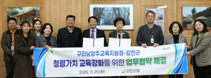 강진원 군수는 “공지자의 청렴은 지역사회와 국민의 신뢰를 지키는 첫걸음이다. 청렴교육의 중심지로 자리매김한 강진에서 구리남양주교육지원청과 함께 청렴가치 확산에 앞장서게 되어 매우 뜻깊다.”며 “앞으로도 다양한 기관과의 협력을 통해 청렴문화 확산에 기여하겠다.”고 강조했다.