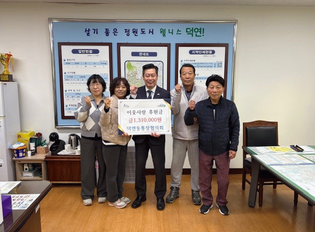 최순 덕연동통장협의회장은 “이번 기탁금은 주민 한 분 한 분의 마음이 담겨 있다”며, “통장단은 늘 가장 먼저 이웃의 손을 잡는 동네의 동반자가 되겠다”고 말했다.