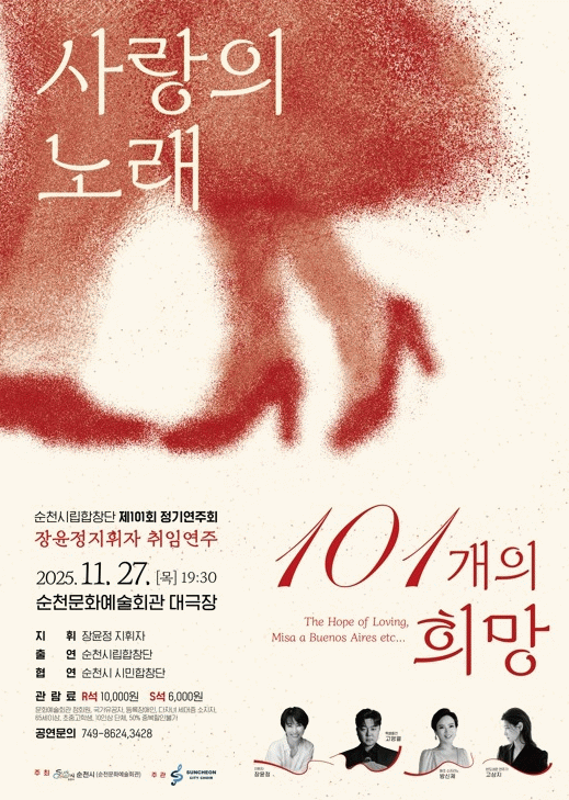 시 관계자는 “제101회 정기연주회는 시민이 함께 만들어 가는 특별한 무대이자, 시립합창단 창단 40주년을 기념하는 뜻깊은 공연이다”며 “많은 시민들께서 감동과 위로를 함께 나누는 시간이 되시길 바란다”고 전했다.
