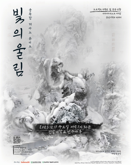 26일 전남대에 따르면, 대학원 G-ROOT(지역사회 연계 혁신연구 지원사업) 선정 프로젝트인 〈빛의울림 – 이이남×융복합 피아노 콘서트'가 오는 12월 17일 오후 7시 30분, 본교 민주마루에서 열린다.