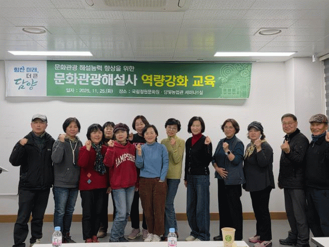 현재 담양군 문화관광해설사들은 주요 관광지 6개소에서 활동하며 역사·문화·정원자원을 알리는 역할을 하고 있으며 군은 앞으로도 체계적 교육 프로그램을 통해 관광객 맞춤형 해설과 안전한 관광 서비스를 제공할 계획이다.