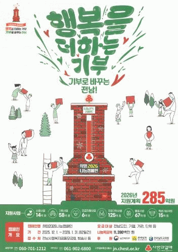 시 관계자는 “따뜻한 순천시민들의 마음을 모아 소외되고 어려운 이웃들에게 희망을 전할 수 있는 희망나눔캠페인에 적극적인 관심과 참여를 바란다”고 말했다.