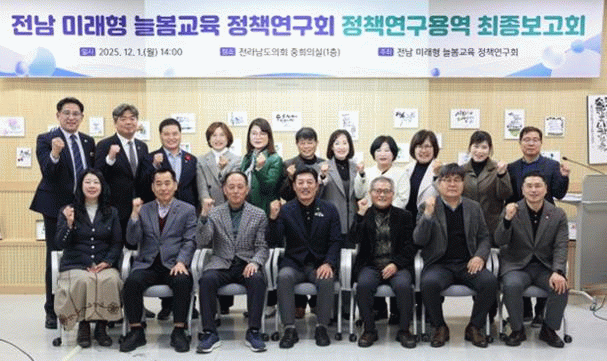정철 대표의원은 “이번 최종보고회는 연구 결과를 정리하는 자리지만, 이는 전남형 늘봄교육 체계를 구축하기 위한 첫걸음에 불과하다”고 평가했다.