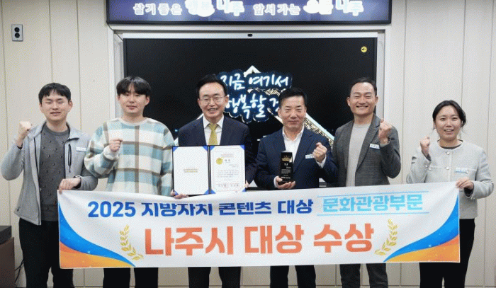 나주시는 지난 11월 27일 국회의원회관 대회의실에서 열린 ‘2025 AI 지자체 성장 포럼 및 지방자치콘텐츠대상’에서 문화관광부문 ‘대상’을 수상했다고 2일 밝혔다.