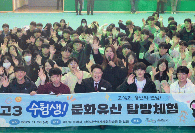 이번 프로그램은 수능을 마친 순천제일고와 한국바둑고 학생 100여 명이 참여한 행사로, 잠시 쉬어가며 순천 지역의 역사와 문화를 직접 체험할 수 있도록 마련된 특별 행사다.