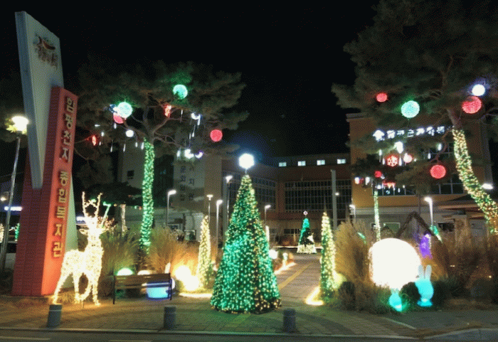 함평군은 5일 “노인복지관, 가족센터, 청소년센터 3개 기관이 함께 함평군천지종합복지관 앞 정원에 크리스마스트리, 달, 토끼 등 다양한 조형물과 야간경관을 설치했다”고 밝혔다.