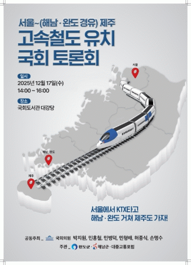 한편 해남군은 심각해지는 지역소멸 위기를 극복하고 생활인규 유입을 통한 지역 활성화를 위해 지난 2월 완도군, 영암군과 함께 해남읍을 경유하는 서울~제주 고속철도 노선을 제5차 국가철도망 구축계획에 반영해 달라고 국토교통부에 공동건의서를 제출한 바 있다.