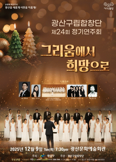 이번 무대는 광산구립합창단뿐만 아니라 맑고 투명한 보이소프라노를 자랑하는 파이트도미니 소년합창단, 현악밴드 모마드 등 특별한 출연진들과 함께 다채로운 음악 무대를 선보일 예정이다.
