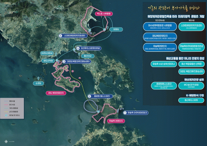 재정사업에는 ▲박람회장 사후활용과 연계한 스마트 해양레저지원센터 ▲돌산 우두리 오션푸드스트릿 터미널(회타운 부지) ▲경도 복합크루즈환승센터 ▲경도-무술목 해역 플로팅 웰니스파크 ▲무술목 해수욕장 아쿠아마린파크 등 5개 권역이 포함된다.
