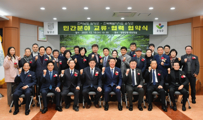 최영일 순창군수는 “순창군은 자매결연 이전부터 담양군과 오랜 기간 동반자처럼 함께해 왔다”며 “이번 협약을 계기로 양 군이 서로의 강점을 살려 다양한 분야에서 실질적 성과를 만들어 가겠다”고 밝혔다.