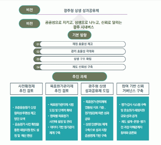 제도 도입 시, 버스업체는 이윤을 위해 자발적으로 비용 절감과 경영 혁신에 나서게 되고, 이는 곧 시 재정 부담 완화와 시민 편익 증대로 이어지는 선순환 구조를 만들 수 있다는 분석이다.