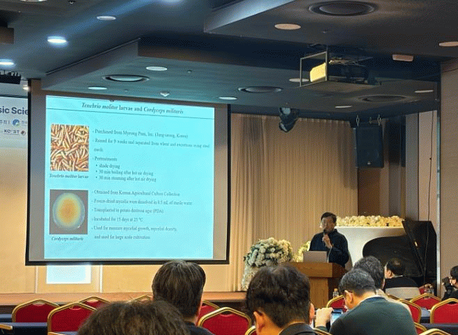 장흥군버섯산업연구원은 ‘Optimized Cordyceps militaris mycelium cultivation on mealworm (Tenebrio molitor) substrate for elevated cordycepin (코디세핀 증대를 위한 밀웜 기질 기반 동충하초 균사체 배양 최적화)’ 연구 결과를 발표해 큰 관심을 받았다.