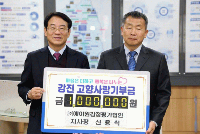 공공용지 취득‧처분‧보상 및 부동산 감정평가, 컨설팅 수행 기업인 ㈜에이원감정평가법인 신용식 지사장은 평소에도 강진군을 위해 고향사랑기부를 실천해 왔다.