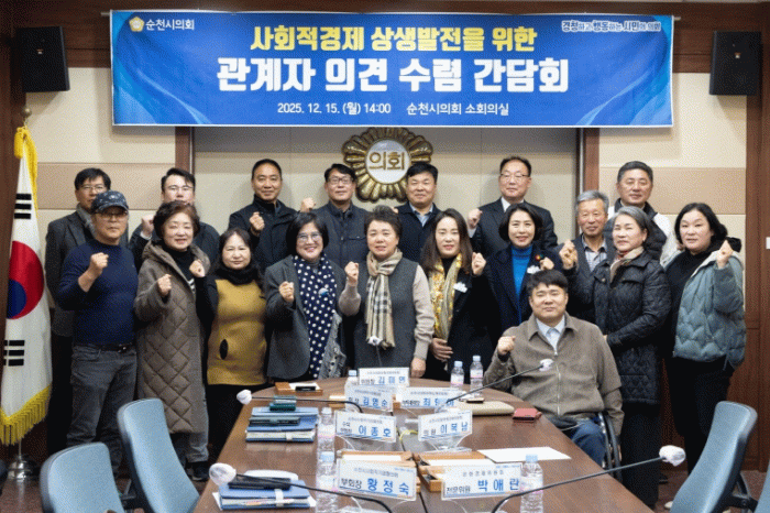 이번 간담회는 문화경제위원회 김미연 위원장의 주재로 개최됐으며, 이복남·최현아·유승현 의원을 비롯해 경제진흥과, 순천사회적경제통합지원센터 관계자와 순천시사회적기업협의회, 마을기업, 협동조합 관계자 등이 참석했다.