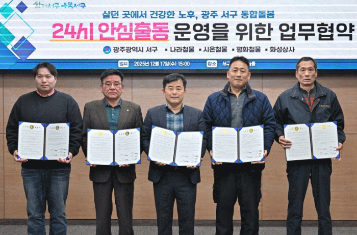 김성배 부구청장은 “이번 협약은 행정과 지역 업체가 함께 만드는 생활 밀착형 돌봄 모델”이라며 “주민이 위기 상황에서도 체감할 수 있는 즉각적이고 실질적인 지원이 이뤄질 수 있도록 ‘24시 안심출동’ 서비스를 지속적으로 강화해 나가겠다”고 말했다.