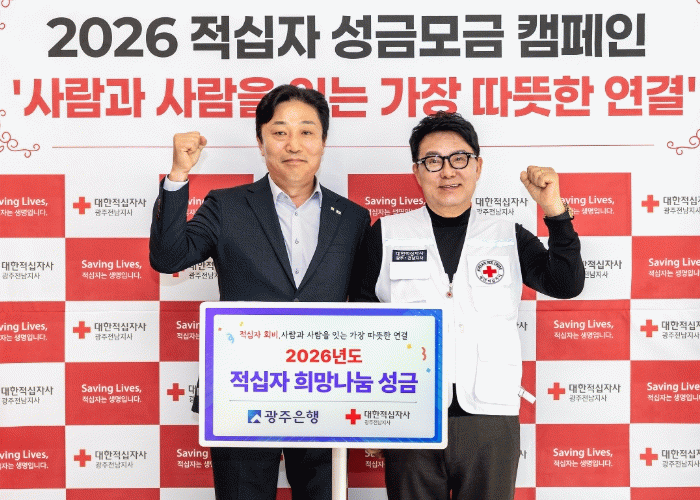 한편, 광주은행은 지난 1일 아시아문화전당에서 열린 ‘희망 2026 나눔캠페인’에 참석해 성금 1억4천7백만 원을 기탁하며 사랑의 온도탑 온도를 높이는 데 동참하는 등 지역사회를 위한 다양한 사회공헌 활동을 지속적으로 전개하고 있다.