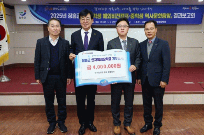 한재욱 지사장은 “작은 정성이지만, 이 기부가 장흥의 학생들이 학문과 인생의 목표를 향해 한 걸음 더 나아가는 데 도움이 되기를 바란다”며, “앞으로도 장흥군 지역 발전과 인재 육성을 위한 다양한 시책에 협력할 것”이라고 말했다.