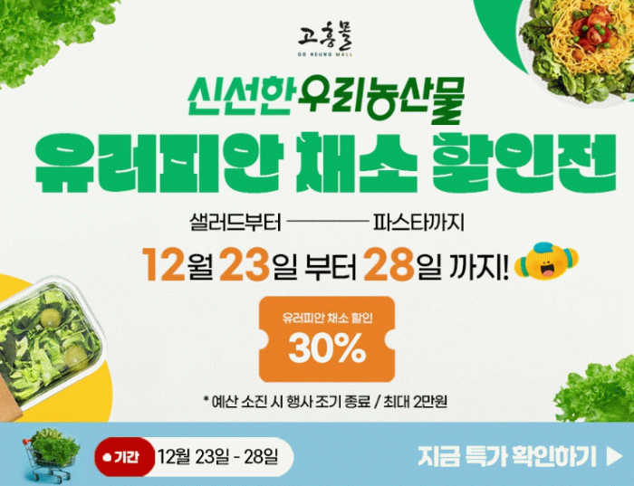행사 기간 고흥몰에서는 30% 할인 쿠폰을 제공해 유러피안 채소를 보다 합리적인 가격으로 구매할 수 있도록 했다.