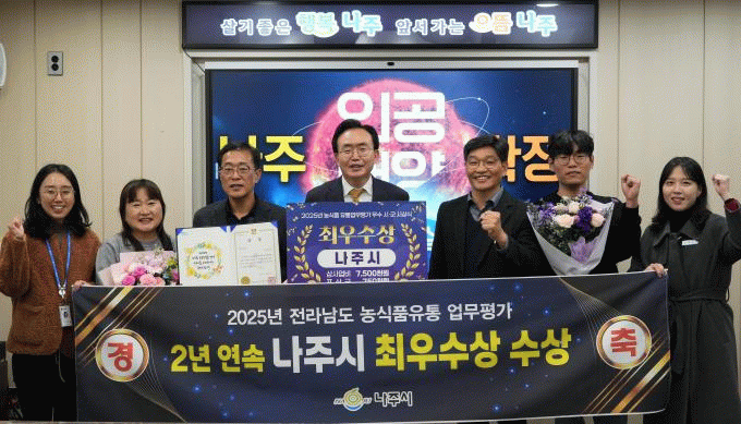 나주시는 전라남도가 주관한 ‘2025년 전라남도 농식품유통 업무평가’에서 2년 연속 최우수상을 받았다고 26일 밝혔다.