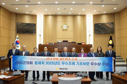 이성옥 의장은 “그동안 해남군의회가 활발히 입법 활동에 노력해 온 결과이며, 앞으로도 군민이 체감할 수 있고 군민의 삶의 변화를 이끌어 낼 수 있는 자치입법 활동에 더욱더 노력하겠다”라고 말했다.