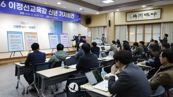 이정선 교육감은 30일 본청 대회의실에서 ‘2026년 기자회견’을 열고 “‘기본교육’을 통해 공교육의 패러다임을 전환하고, 학생·학부모·교직원·시민 모두에게 배움의 힘을 드리는 광주교육이 되겠다”고 말했다.