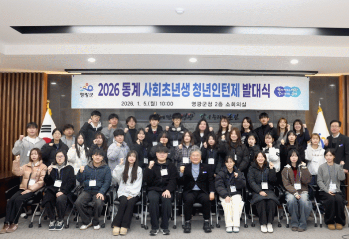 이날 발대식에서 영광군수는“2026년 동계 사회초년생 청년인턴제를 통해 행정 경험을 축적하여 앞으로 더 넓은 세상으로 나아갈 때 든든한 자산이자 디딤돌이 되기를 바란다.”라고 말했다.
