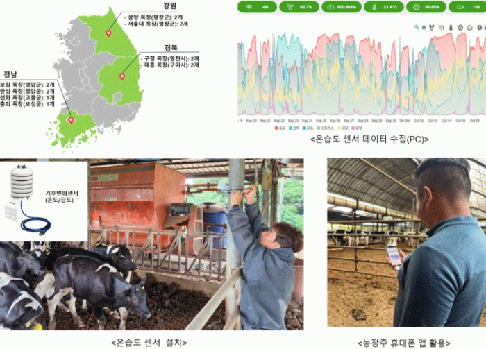 연구팀은 농장 내부에 설치된 환경 센서를 통해 측정한 온도·습도 자료와 기상청(KMA)의 지역별 기상 데이터를 비교·분석해, 실제 젖소가 받는 열 스트레스 수준을 정량적으로 평가했다.