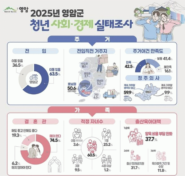 영암군과 호남지방통계청이 청년의 사회·경제적 삶 실태 파악 및 정책 수립 기초자료 활용을 위해 실시한 ‘2025년 청년사회경제실태조사’ 결과가 나왔다.
