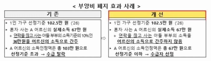 이번 개편의 가장 큰 변화는 의료급여 소득 산정 시 적용되던 ‘부양비’ 제도의 폐지다.