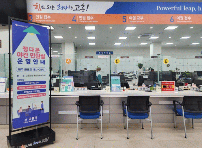 한편, 고흥군은 야간 민원실 운영 성과를 분석해 향후 민원 종류 다양화 등 군민 중심의 맞춤형 행정서비스 강화 방안을 적극 검토할 계획이다.