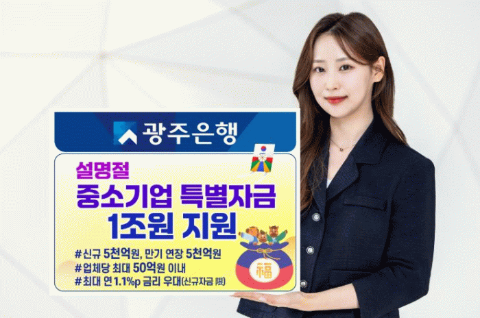 한편, 광주은행은 매년 설과 추석 명절에 유동성 확보에 어려움을 겪는 지역 중소기업과 소상공인을 대상으로 특별자금을 편성해 지원해오고 있으며, 이를 통해 지역 내 기업 활동이 위축되지 않도록 돕는 등 지역밀착경영과 상생금융 실천에 힘쓰고 있다.