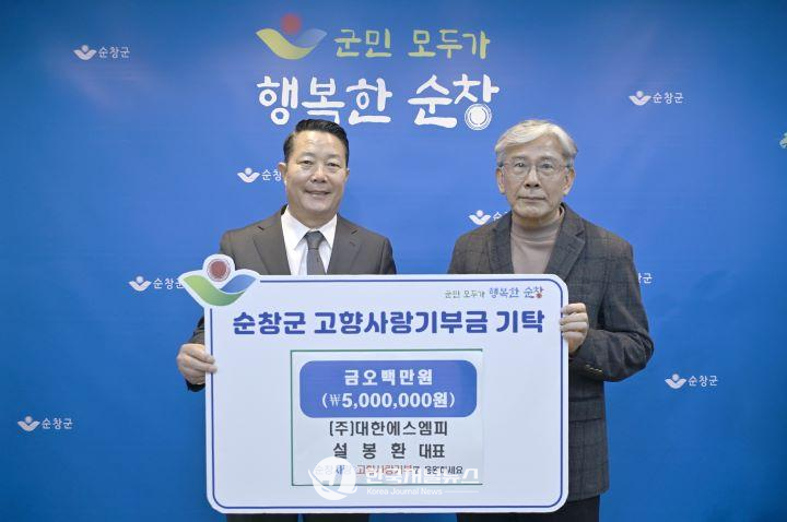 최영일 순창군수는 “고향을 잊지 않고 따뜻한 나눔으로 순창에 큰 힘을 더해주신 설봉환 대표께 깊이 감사드린다”며 “보내주신 기부금은 군민 복지 증진과 순창군 발전을 위해 소중하게 사용하겠다”고 말했다.