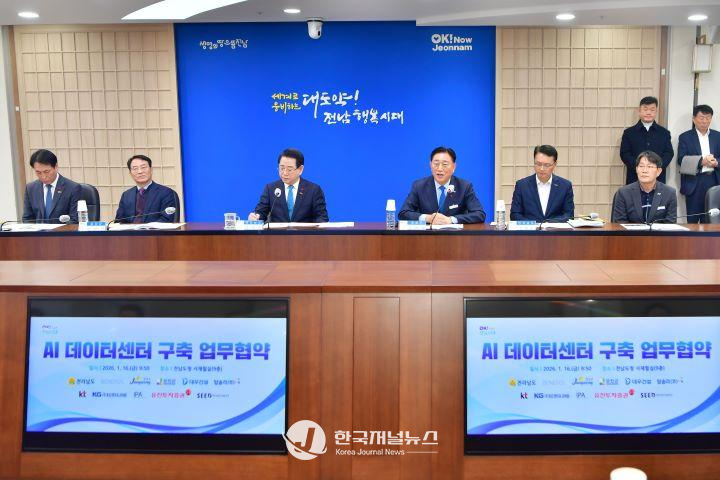 군은 16일 전남도청에서 전라남도, ㈜베네포스, 케이티(KT), 대우건설, 탑솔라, 아이피에이(IPA), 케이지(KG)엔지니어링, 유진투자증권, 시드인베스트먼트 자산운용과 함께 ‘AI 데이터센터’ 구축 업무협약을 체결했다.