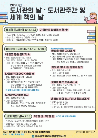 이번 행사는 ‘제4회 도서관의 날’(4월 12일)을 맞아 시민들에게 도서관의 가치를 알리고 일상 속 독서 문화 확산을 위해 마련됐다.