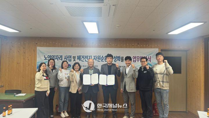 이번 협약은 노인일자리(약 150명) 공익활동과 연계하여 지역 내 폐건전지 수거 체계를 구축하고, 환경오염 예방과 자원 재활용 활성화를 도모하기 위해 추진됐다.