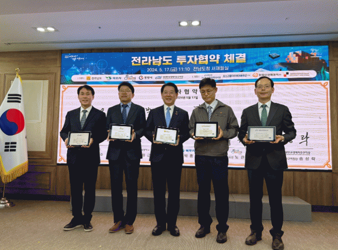 시는 17일 전라남도청 서재필실에서 ㈜포스코인터내셔널, 포스코중타이에어솔루션㈜, 한화오션에코텍㈜과 대규모 투자협약(MOU)을 체결했다.