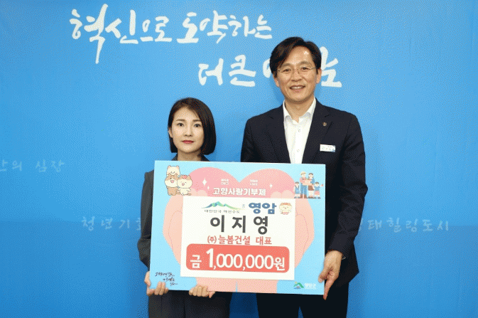 이 대표는 “지인 소개로 고향사랑기부에 나섰다. 지역 청년과 어르신들을 위해 기부금이 쓰이길 바란다”고 전했다.