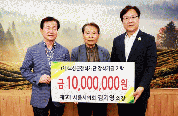 보성군은 지난 20일 고향 보성을 방문한 제5대 서울시의회 김기영 전 의장이 보성군장학재단(이사장 문찬오)에 1천만 원 장학금을 기탁했다고 밝혔다.