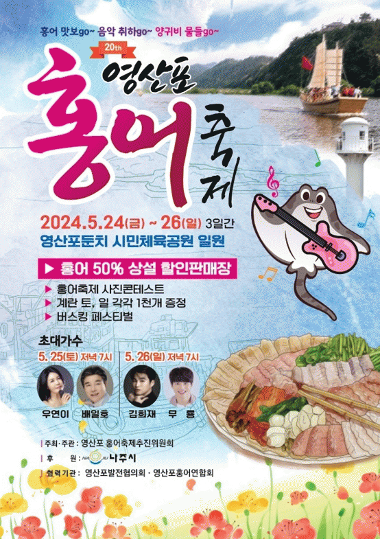 21일 나주시에 따르면 오는 24일부터 26일까지 3일간 영산포둔치 시민체육공원 일원에서 ‘제20회 영산포 홍어축제’가 열린다.