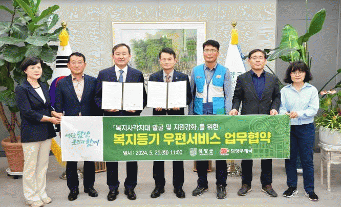 복지등기 우편사업은 단전, 단수, 공공요금 장기 체납 등의 대상자에 복지사업 정보가 담긴 등기우편을 집배원이 직접 배달하고 주거환경과 생활실태 등을 파악해 담양군에 전달하면 군은 위기가구에 공적 급여와 통합사례관리사업 연계 등 다양한 맞춤형 복지서비스를 지원하는 사업이다.